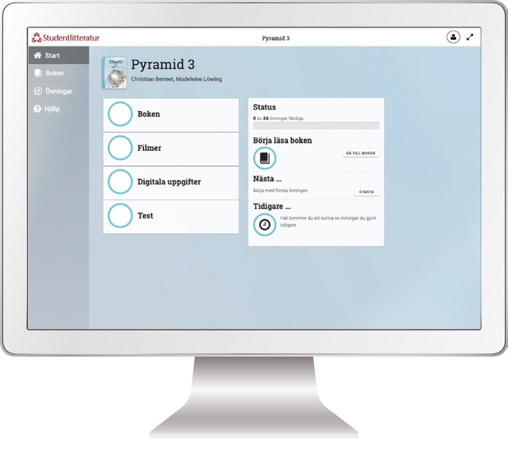 Det är viktigt att du gör alla uppgifter i boken. Precis som inom idrott är det övning som ger resultat. Förutom uppgifterna i boken finns det digitala uppgifter som du kan göra. Det finns också digitala test där du kan pröva om du har förstått ett lite längre avsnitt. Digitala uppgifter och test ändras automatiskt om du gör dem flera gånger. Inför vissa avsnitt kan du också titta på en kort film där vi som har skrivit boken beskriver innehållet. Filmer, övningar och test finns på bokens webbplats.