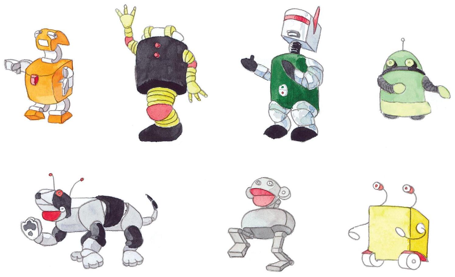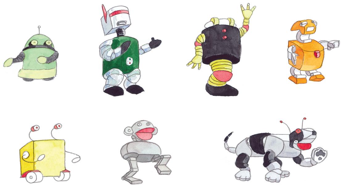 Gör så här: En av er är robot och den andra är programmerare. Programmeraren tänker först ut vart roboten ska gå. Skriv sedan programmet med hjälp av instruktionerna.