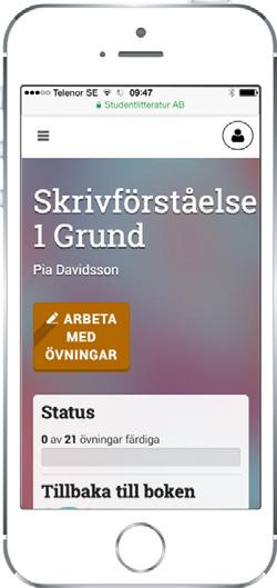 I det digitala läromedlet finns extraövningar till varje moment, utmaningar och facit. Här finns också en checklista som eleven och läraren kan använda tillsammans för att följa upp elevens skrivande formativt.