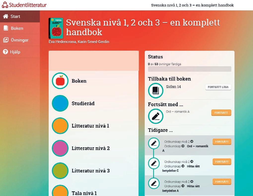 Svenska nivå 1, 2 och 3 - en komplett handbok är en tryckt bok med ett digitalt läromedel som kompletterar bokens innehåll. Läromedlet är författat av det erfarna och populära författarparet Eva Hedencrona och Karin Smed-Gerdin. Handboken täcker alla moment som ingår i ämnet Svenska nivå 1, 2 och 3.