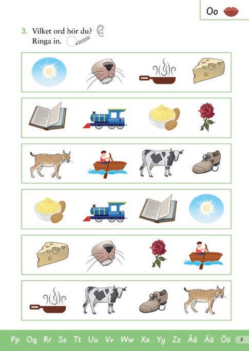 Uppgifterna i arbetsboken trĂ€nar grafemâfonemkoppling och sammanljudning.