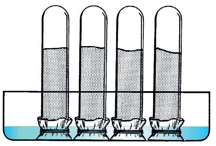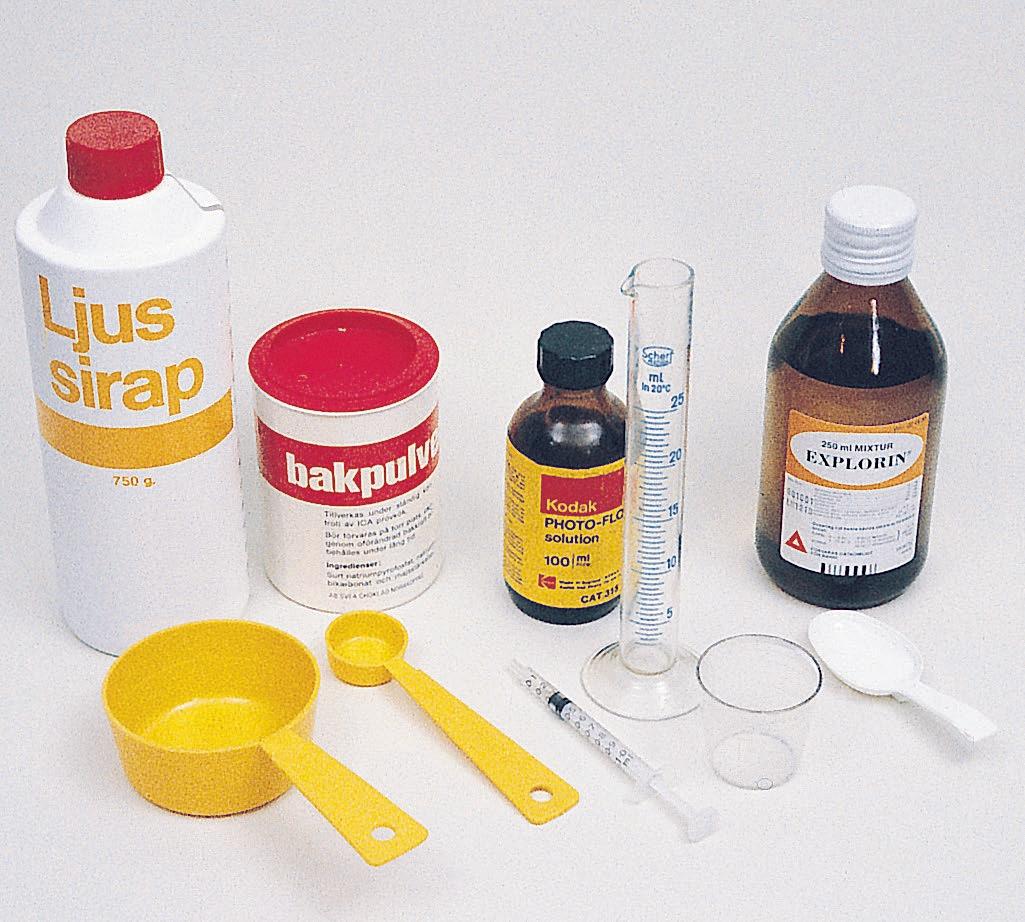 49. Ställ två likadana bägare på var sin vågskål på en balansvåg. Fyll den ena bägaren till brädden (så mycket det går) med vatten. Kan du sedan hälla T-sprit i den andra bägaren tills vågen väger jämnt? Motivera ditt svar.