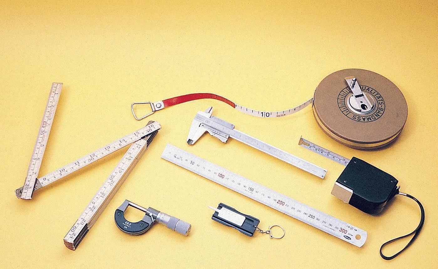 1.Tumstock.2.Mikrometer.3.Mönsterdjupsmätare. 4.Stållinjal.5.Skjutmått.6. och 7.Måttband.