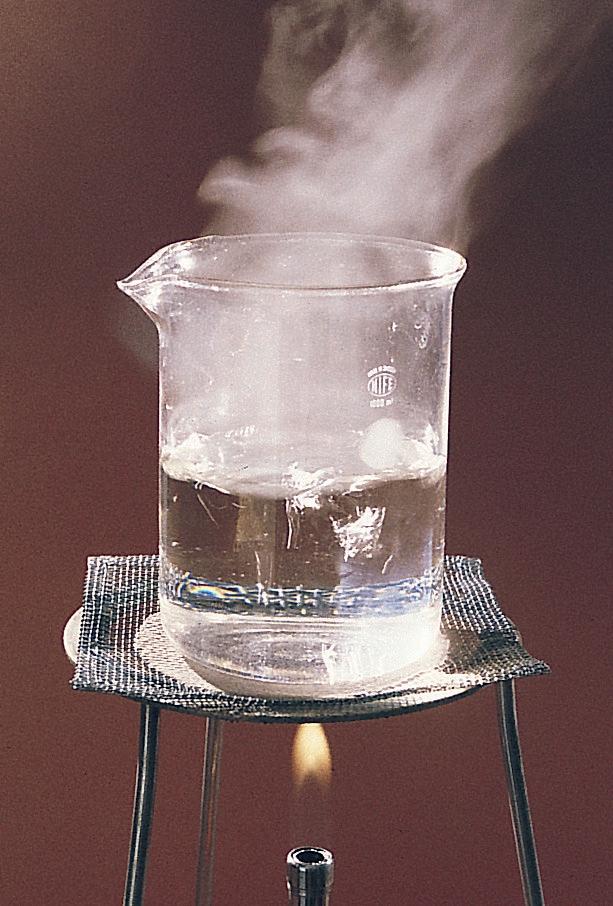 Vid temperaturen 100°C blir molekylernas rörelser så kraftiga, att de frigör sig från varandra. Vattnet kokar (övergår till ånga).