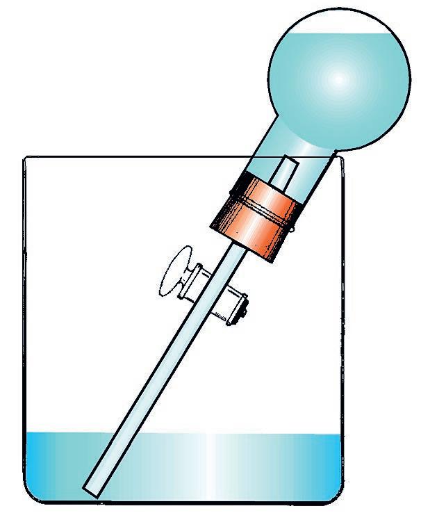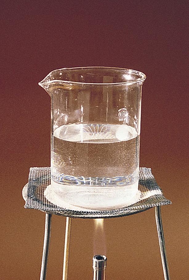 47. Vi ställer en tom bägare på en våg, som då visar 210g. Sedan häller vi 200cm3 aceton i bägaren.