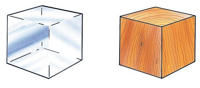 54. En balansvåg är i jämvikt när två likadana bägare står på var sin sida. I den ena bägaren lägger du ett antal iskuber som tillsammans väger 9 gram. I den andra bägaren lägger du små kuber av furuträ. Kuberna har sidorna 1 cm.