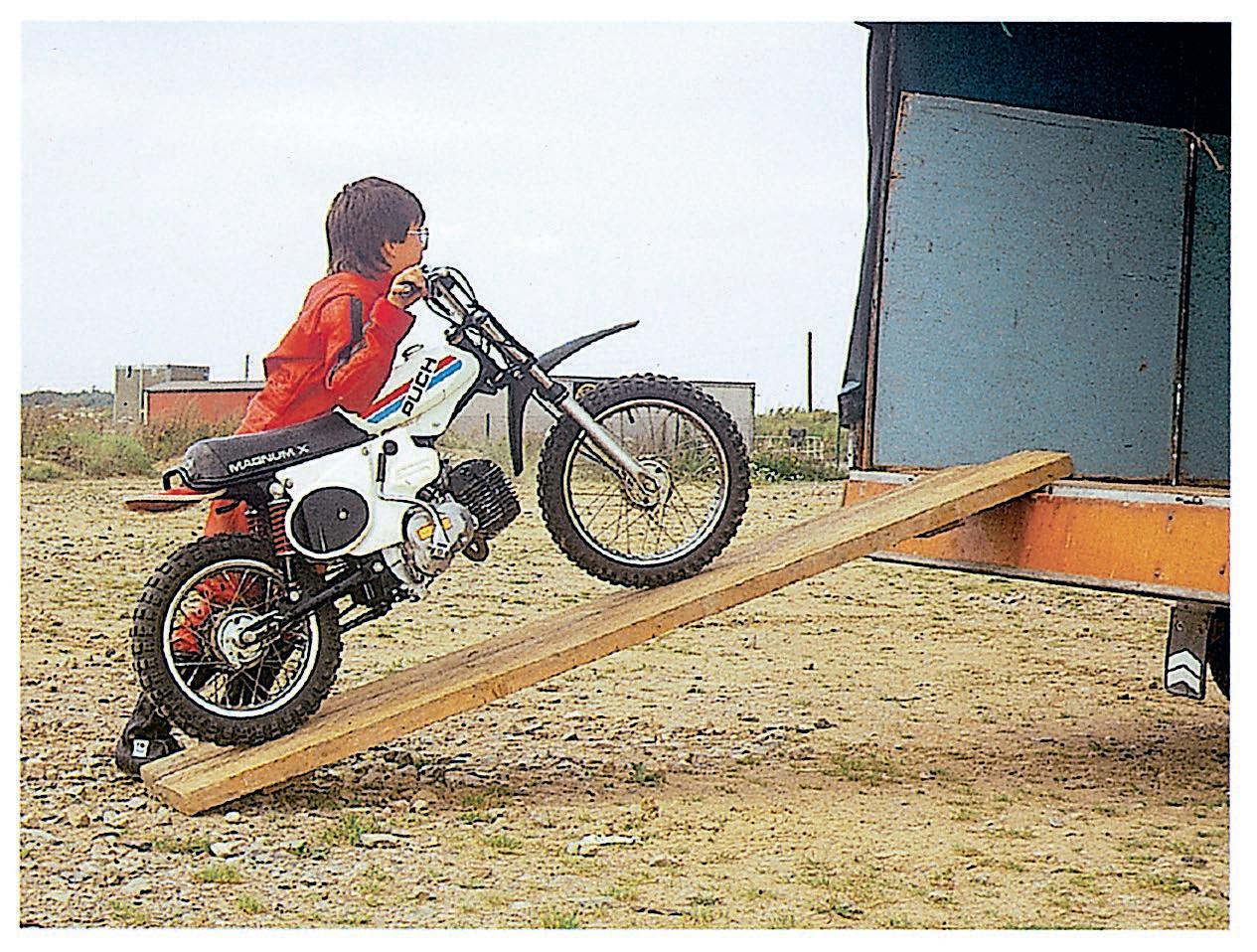 Om vi använder en 2meter lång planka och rullar upp motorcykeln, måste den förflyttas en dubbelt så lång sträcka, men det räcker med en kraft som är hälften så stor. En planka eller liknande som används på detta sätt brukar kallas ett lutande plan