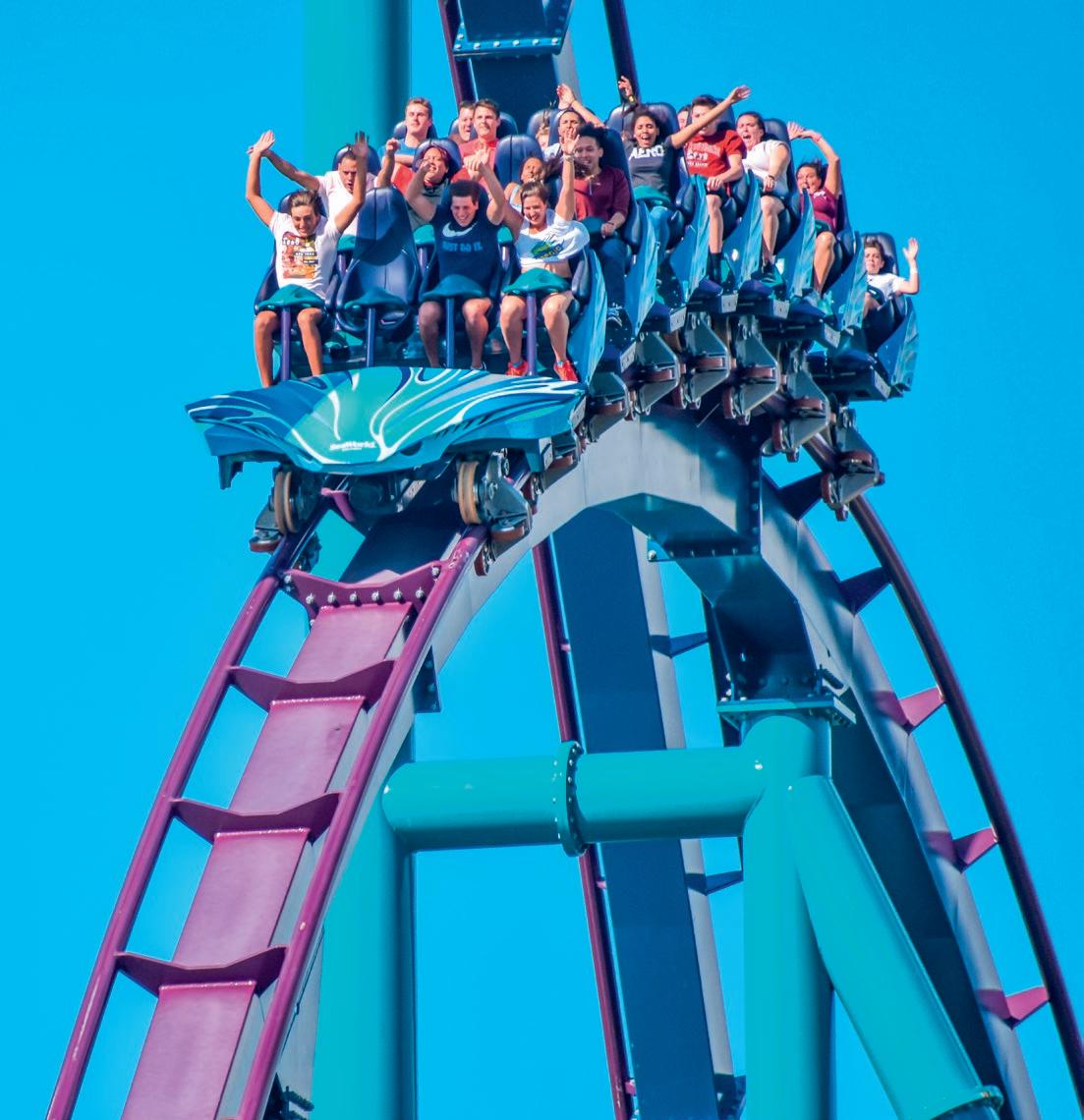 När vagnarna i berg-och dalbanan börjar sin färd nedför banan, minskar lägesenergin undan för undan. Den omvandlas då i stället till en annan energiform som kallas rörelseenergi. Ju större fart vagnen får och ju större massa den har, desto större blir rörelseenergin. Den lägesenergi du har då du står uppe i slalombacken omvandlas också till rörelseenergi, när du åker nedför backen. Lägesenergi kan alltid omvandlas till rörelseenergi och tvärt om