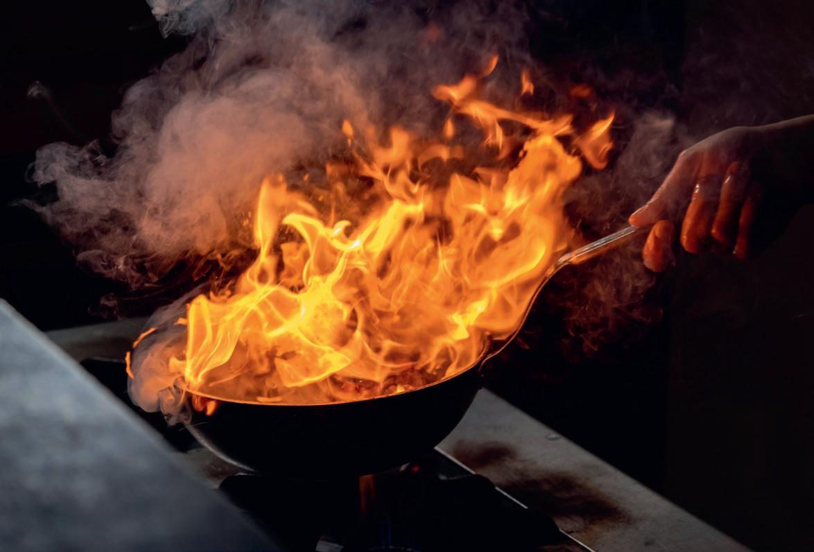 b)Beskriv kortfattat hur man bör släcka en brand som uppstått i matfett (exempelvis i en stekpanna):