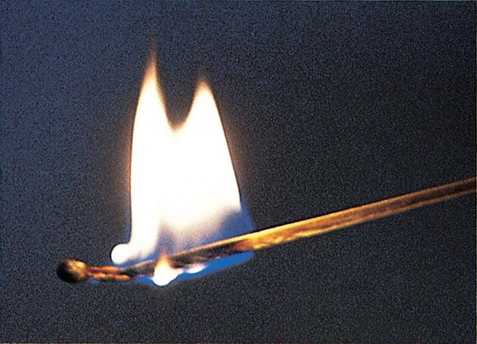2.Lägg en ytterst liten bit fosfor (betydligt mindre än en ärta) på en upp och nedvänd degel. Värm en glasstav något i en låga. Staven behöver inte vara varmare än att man kan ta på den utan att bränna sig. Vidrör sedan fosforbiten med glasstaven. Vad händer och vad visar detta?