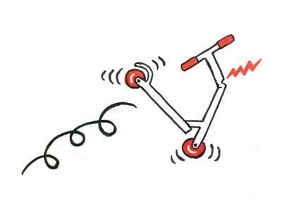 Jag tappade balansen och det blev som is i kroppen på mig när det hände. Alldeles livrädd blev jag. Hela sparkcykeln började skaka och den slingrade sig snabbt