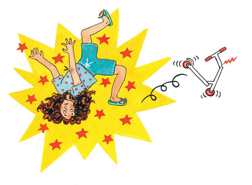 Jag gjorde bara lite fart med foten och så började jag rulla. Det var en bra backe för sparkcyklar, backen som gick hela vägen från torget och hem till oss. Den var inte brant, men den var lång. Inte livsfarlig, bara kul. Ändå brukade pappa alltid springa efter och skrika om att jag skulle sakta ner och att jag skulle akta cyklisten, tanten, hunden, kanten …