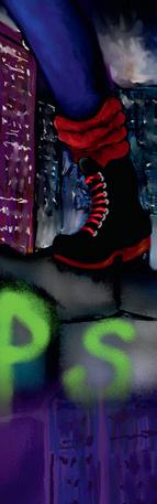 Smoke billows and fires crack. She knows the streets well. Streets walked on with her family, her parents and sister. Streets so familiar and yet now, in completely different light – the light of fire, the light of rage, the light of indignation – the streets are so different. Buildings loom over her, made menacing by the billowing smoke, the shapes and shadows of people, people holding stones, people with raised arms, beaten with open mouths wide and red with anger and fear. And the dark figures of the City Watch, the arms raised with electric sticks throwing pain. So Kola runs. Always down. Away from everything she knows, into the unknown, into anything else.