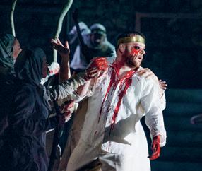 Bilden är från en uppsättning av Sofokles tragedi Kung Oidipus. Kungen är förtvivlad när sanningen avslöjas: han har ovetandes dödat sin egen far och gift sig med sin mor. I desperation över denna insiktsticker han ut sina ögon.