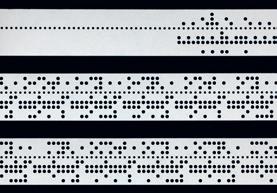 På bilden syns hålkort som användes i tidiga datorsystem för att mata in information. Perceptron-modellen tränades med hjälp av sådana kort för att känna igen enkla mönster.