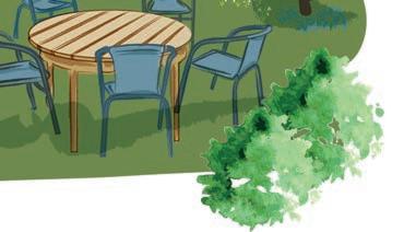 I trädgården står ett bord och några plaststolar. Villes mamma ställer fram ett fat med scones.