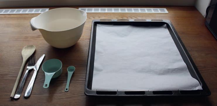7. Lägg de båda kakorna på en plåt med bakplåtspapper.