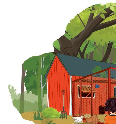 Dima tänker att hon ska fråga mamma och pappa om de kan bygga ett litet hönshus där hemma i trädgården. Det skulle ju faktiskt få plats. Det vore så roligt att ha egna höns.