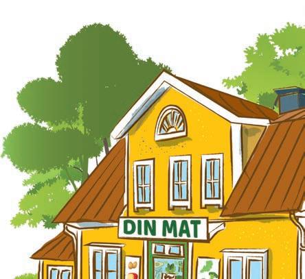 De åker genom den lilla byn Ljungeryd. Lasse pekar på ett stort gult hus med en skylt som det står ”DIN MAT” på.