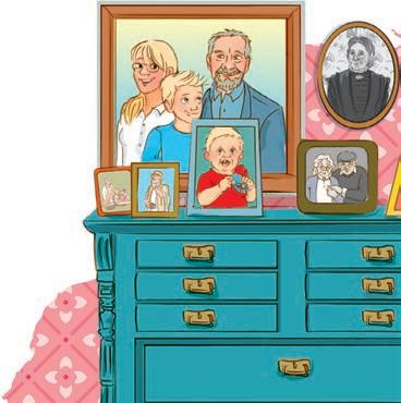 De tittar runt bland alla foton. På byrån finns ett foto på Ville när han var liten.