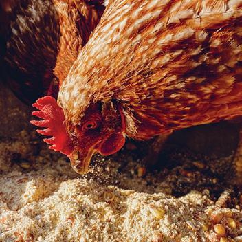 De ger hönsen mat.