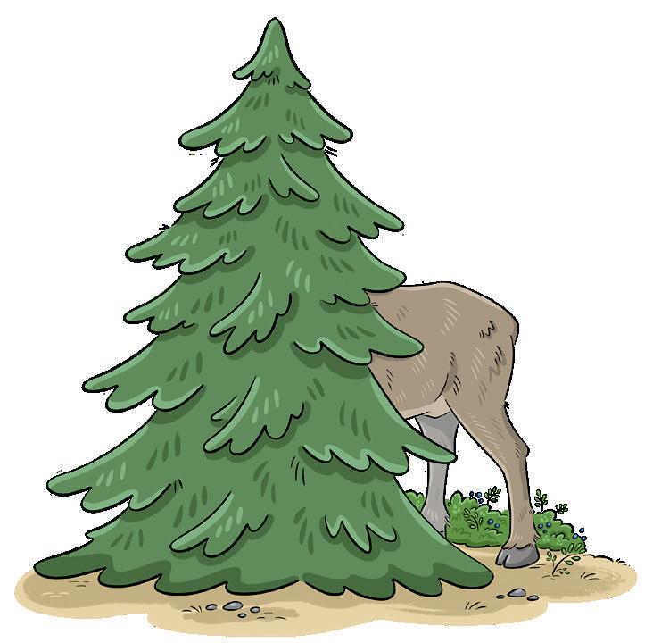 Mule gömmer sig bakom en stor gran.