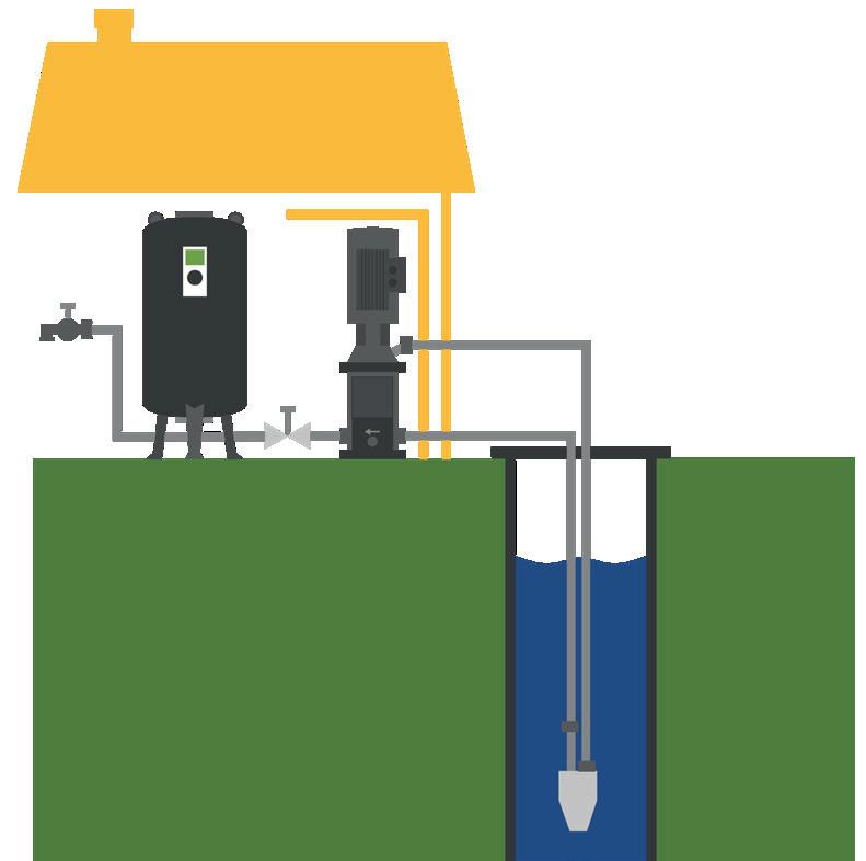 Djupbrunnspump Pump som används för att hämta upp grundvatten, oftast mellan 30-120 meter ner i marken.