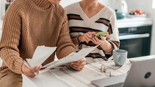 De vuxna i ett hushåll får lön från sitt arbete. De betalar skatt. Om de har barn får de pengar från staten i form av barnbidrag. Hushåll kan låna pengar från banken för att köpa en bostad. Då betalar de ränta för sitt lån. Om man sparar pengar på banken i ett sparkonto får man ränta på pengarna. Hushållet använder sina pengar för att handla mat och kläder.