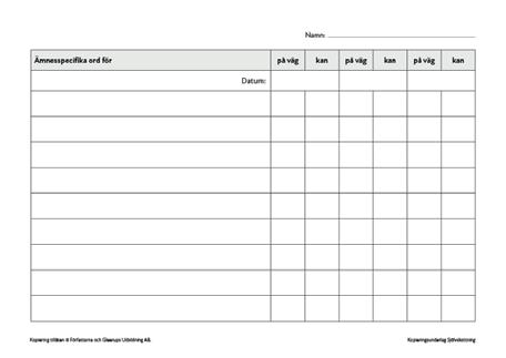 Kopieringsunderlag med tre olika rubriker som kan hjälpa eleverna att tänka till sin ordförståelse vad gäller texterna i grundboken. Orden till varje avsnitt ska placeras i den spalt som eleven känner stämmer för sitt eget lärande.