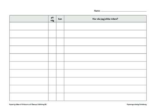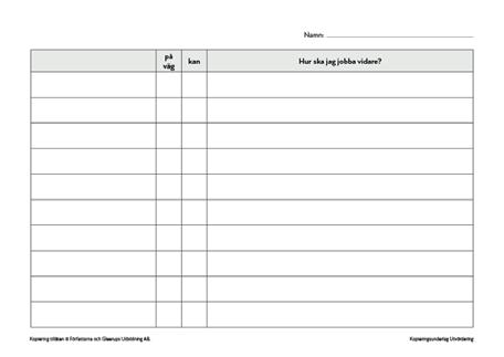 • Kan/Känner till/Kan inte mall
