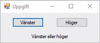 2.2 Skriv ett program som visar fönstret nedan. Det innehåller två knappar och en etikett (label). När man klickar på knappen Höger ska etiketten flytta sig åt höger och när man klickar på Vänster ska den flytta sig åt vänster.