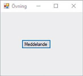 Skapa ett projekt med namnet Övning02-02 i Visual Studio. Skriv sedan ett program enligt bilden nedan. På huvudfönstret ska det finnas en knapp med texten Meddelande. När användaren klickar på den ska meddelanderutan visas.