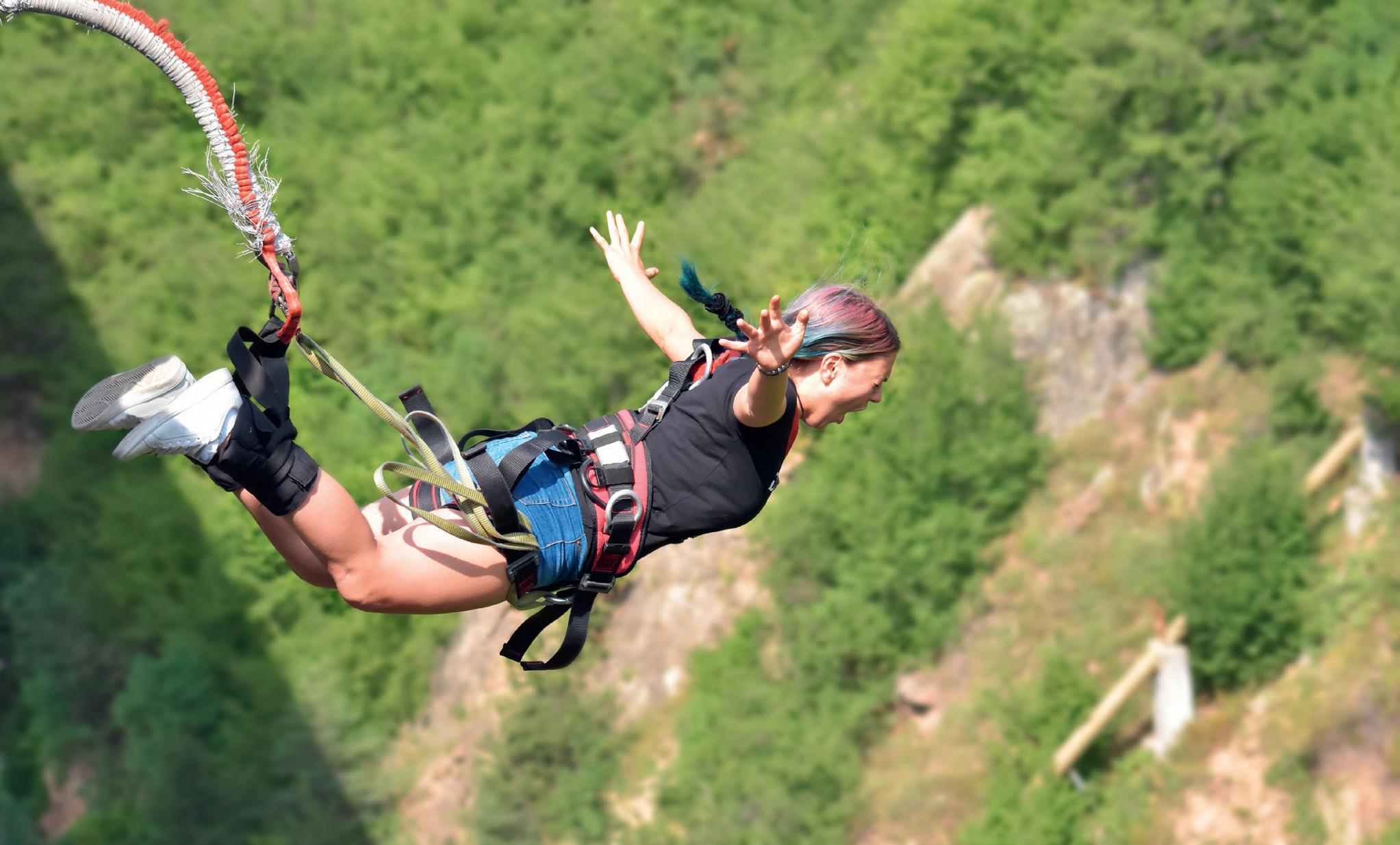 Äventyrsaktivitet: bungy jump Adjektiv – adverb, preteritum, repetition av presens, futurum och perfekt