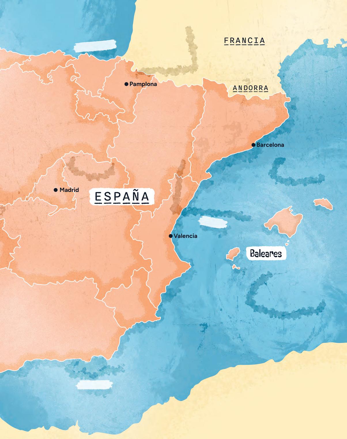 Ibiza, Mallorca y Menorca son las islas Baleares. Están en el mar Mediterráneo.