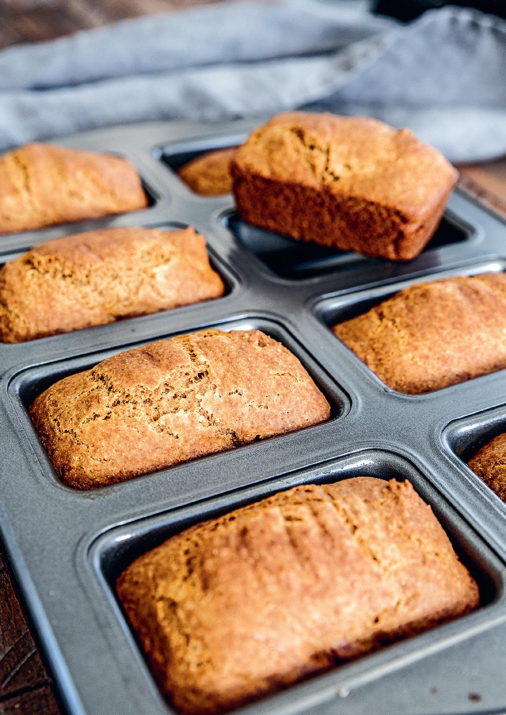 4. Häll smeten i två smorda brödformar som rymmer 1,5 liter eller i små formar. Grädda i nedre delen av ugnen i 1 timme för ett stort bröd, eller 20 minuter för små bröd.