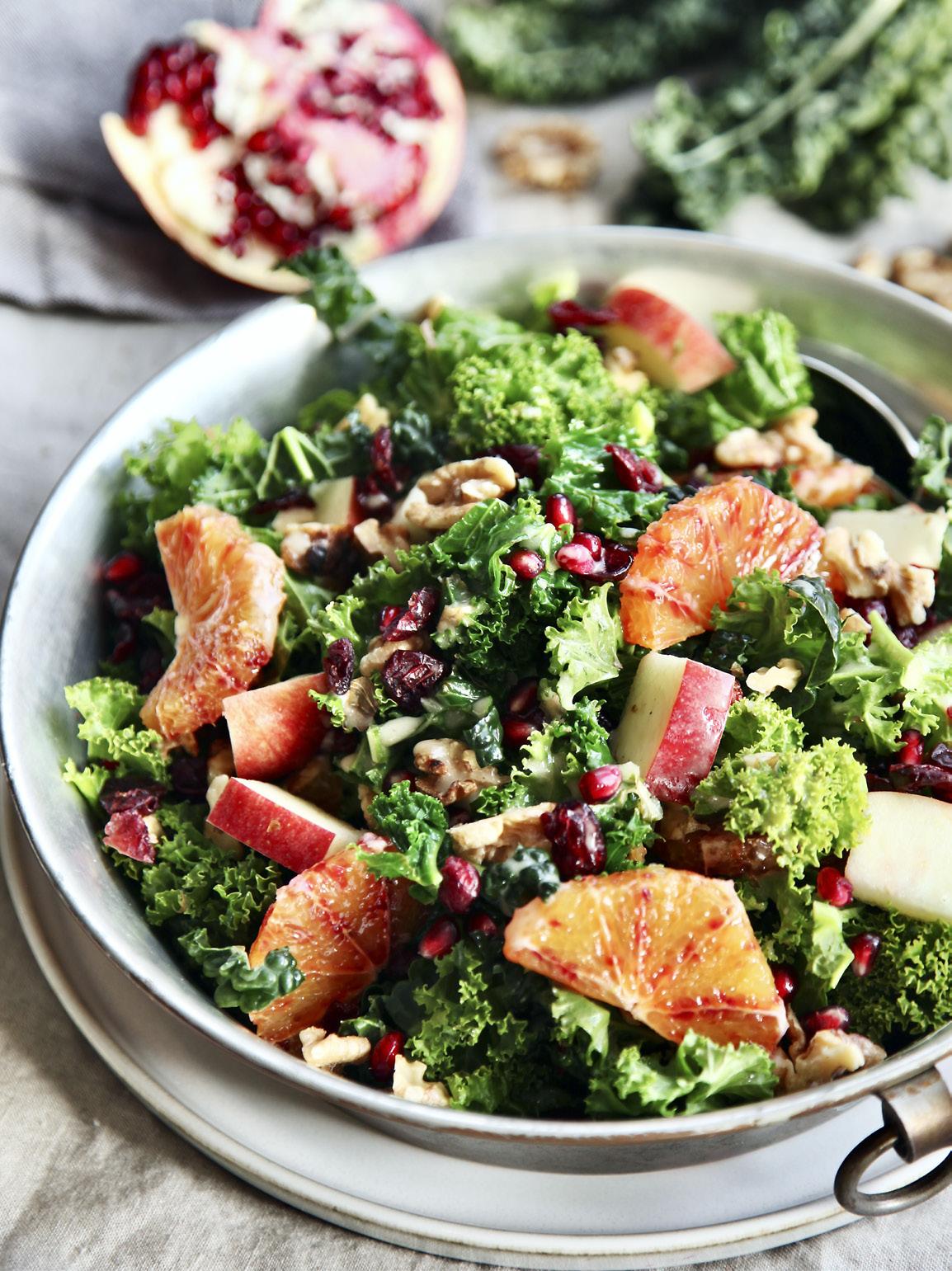 Den här salladen bjuder på sött, salt, syrligt, krispigt och mjukt på samma gång. Blandningen av äpple, apelsin, granatäpple, tranbär, nötter och kål är underbar, och tillsammans med dressingen doftar den verkligen jul.