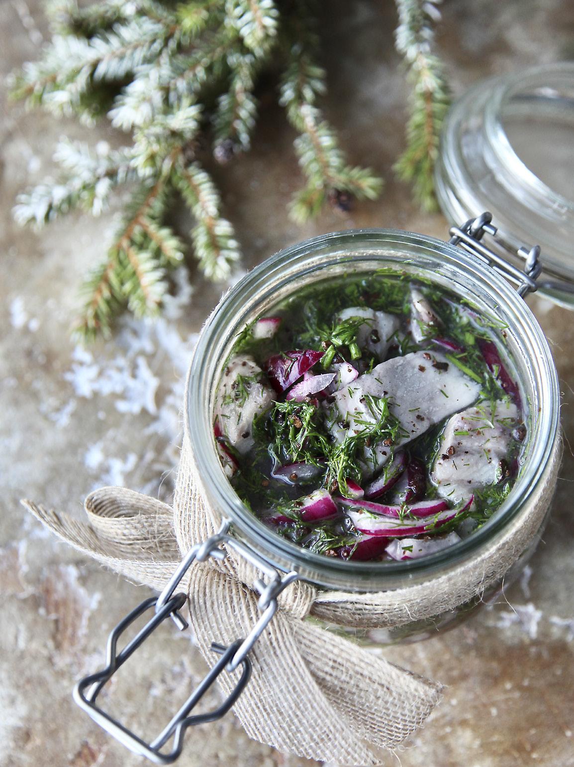 5. Smaka av med lite flingsalt och lägg sillen i en burk.