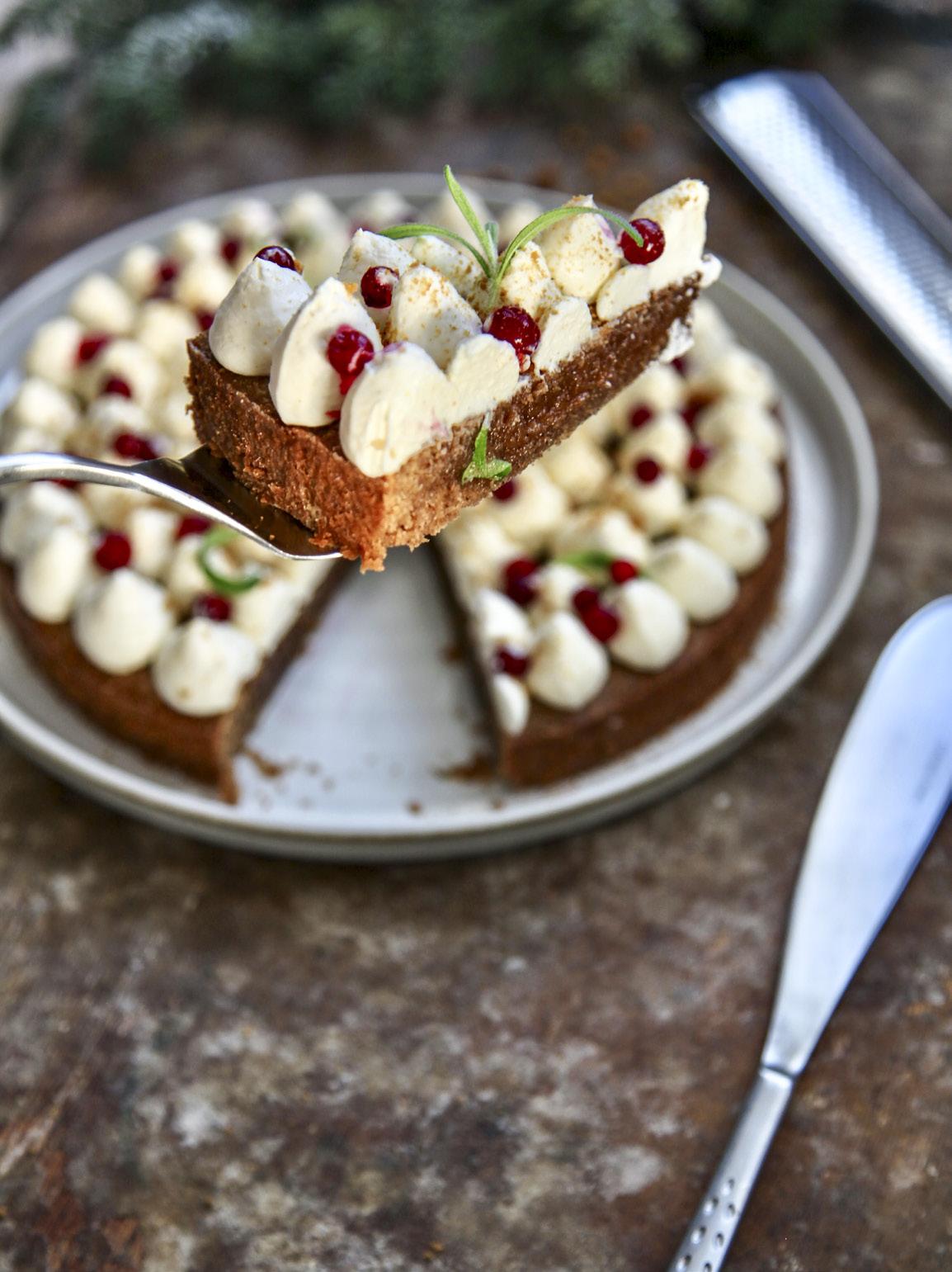 9. Dekorera med lingon, riven pepparkaka och eventuellt någon örtkrydda.