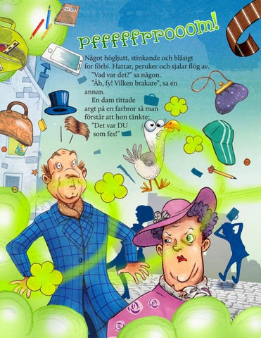 Något högljutt, stinkande och blåsigt for förbi. Hattar, peruker och sjalar flög av. ”Vad var det?” sa någon. ”Åh, fy! Vilken brakare”, sa en annan. En dam tittade argt på en farbror så man förstår att hon tänkte: ”Det var DU som fes!”