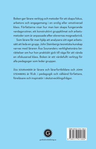 Boken ger lärare verktyg och metoder för att skapa fokus, arbetsro och engagemang i en orolig eller omotiverad klass. Författarna visar hur man kan skapa fungerande vardagsrutiner, ett konstruktivt gruppklimat och arbetsmetoder som är anpassade efter elevernas mognadsnivå. Som lärare får man hjälp att analysera sitt eget arbetssätt att leda en grupp. John Steinbergs teoretiska kunskap varvas med läraren Åsa Souranders verklighetsnära berättelser om hur hon praktiskt gick till väga för att vända en ofokuserad klass. Boken är ett värdefullt verktyg för alla pedagoger som leder grupper.