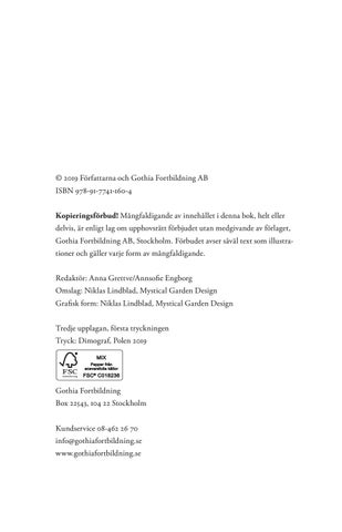 © 2019 Författarna och Gothia Fortbildning AB ISBN 978-91-7741-160-4 Kopieringsförbud! Mångfaldigande av innehållet i denna bok, helt eller delvis, är enligt lag om upphovsrätt förbjudet utan medgivande av förlaget, Gothia Fortbildning AB, Stockholm. Förbudet avser såväl text som illustrationer och gäller varje form av mångfaldigande. Redaktör: Anna Grettve/Annsofie Engborg Omslag: Niklas Lindblad, Mystical Garden Design Grafisk form: Niklas Lindblad, Mystical Garden Design Tredje upplagan, första tryckningen Tryck: Dimograf, Polen 2019