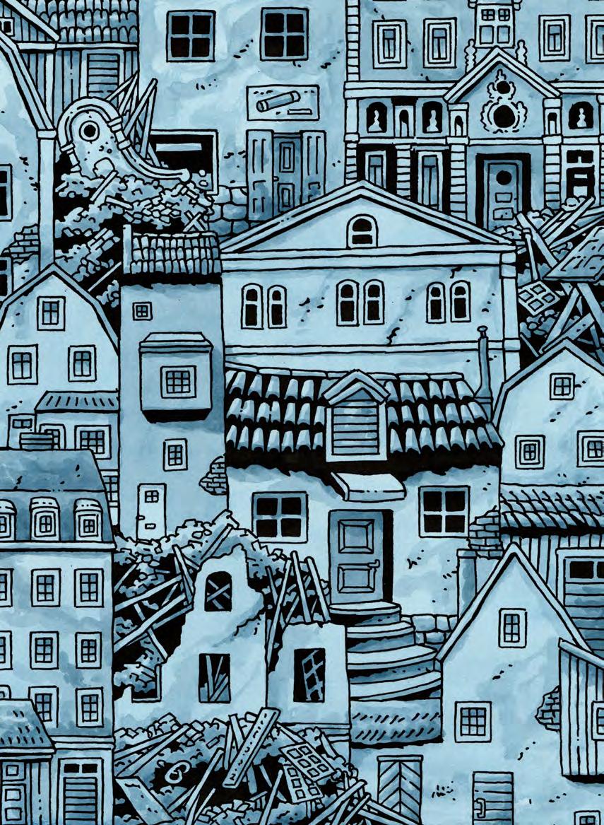 En liten hall ledde in till ett rum fullt av sovande människor. Deras långsamma andetag var det enda som hördes. Men de sov inte djupt, snart var det morgon. Någonstans tickade en väckarklocka, redo att när som helst bryta ut i ett ilsket ringande.