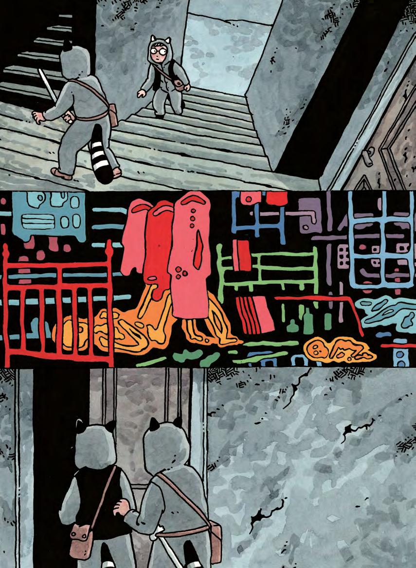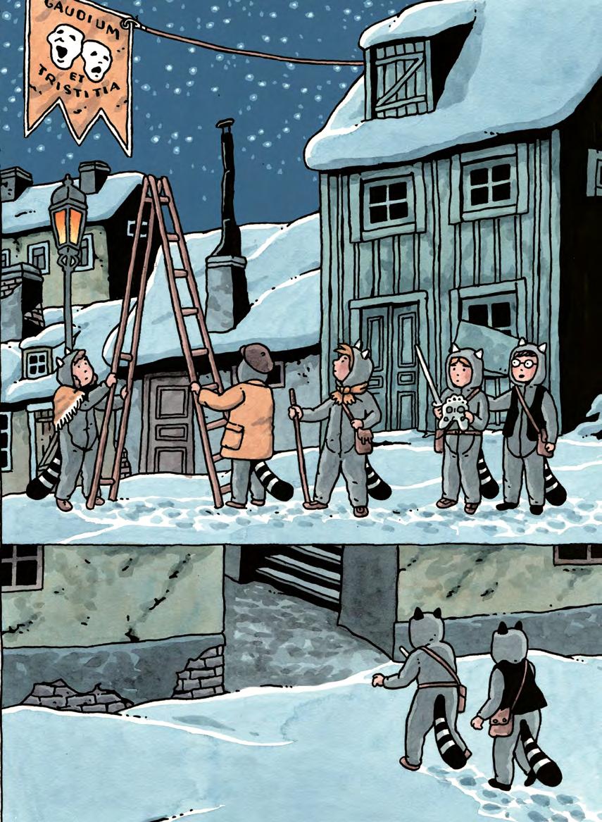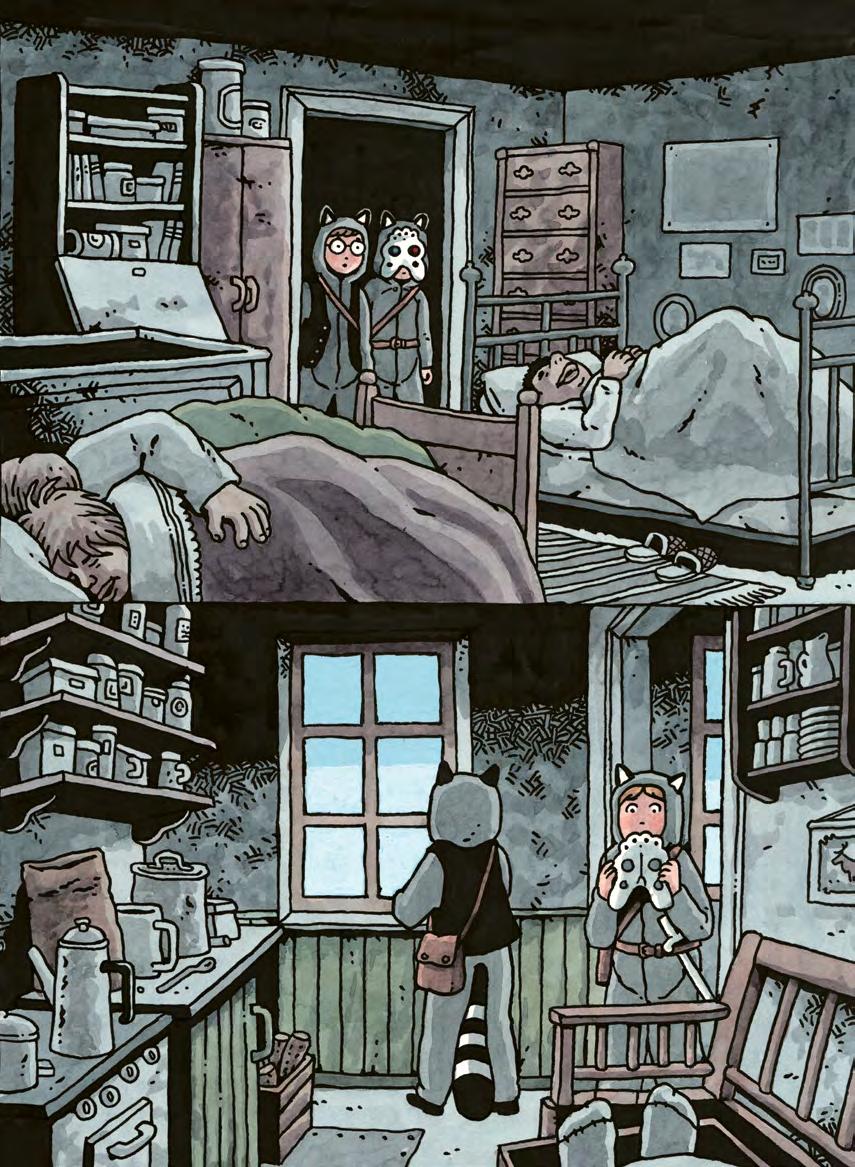 Tvättbjörnarna smög på tå mellan sängarna och kom in i köket. Till vänster upptäckte Klara ytterligare en person som sov i en kökssoffa. Men Perri gick raka vägen fram till fönstret och drog upp haspen.