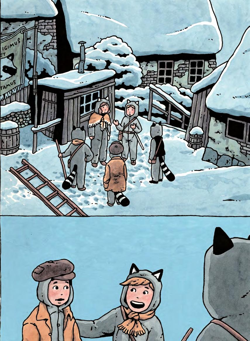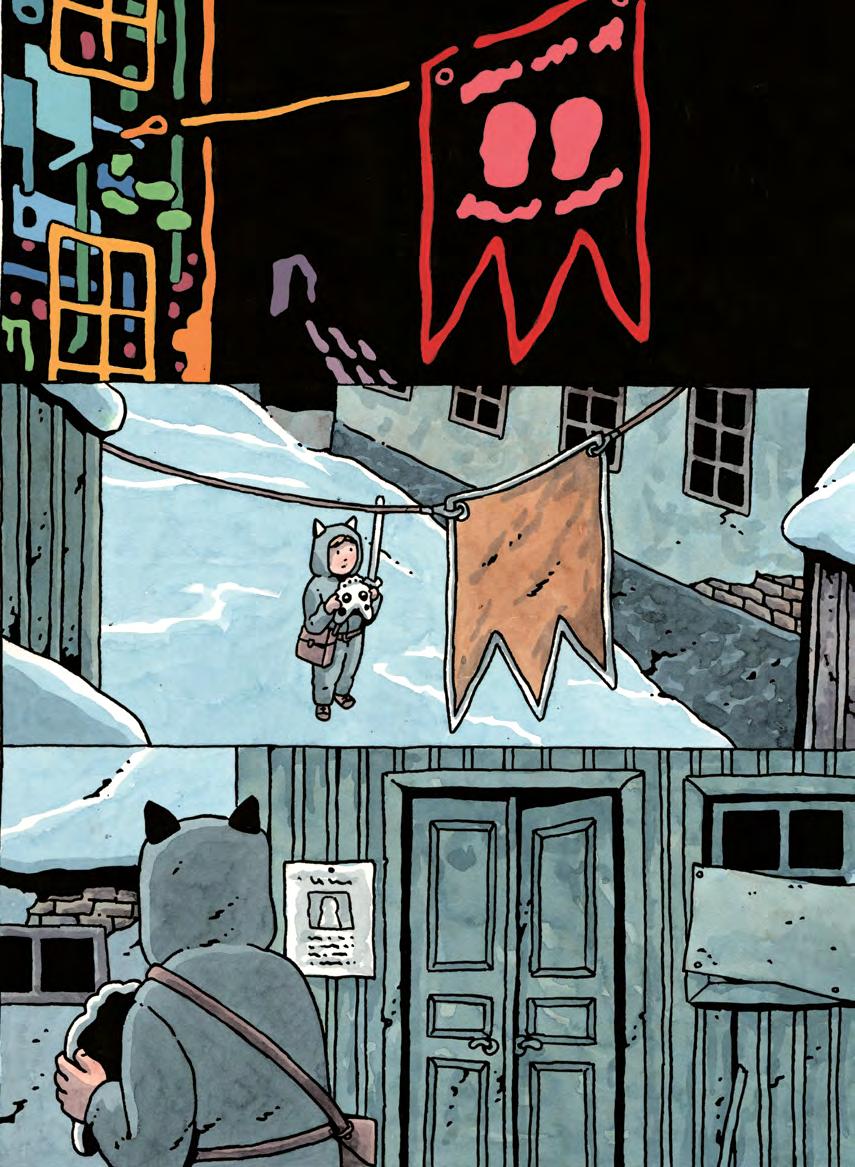 Sen pulsade hon iväg genom snön, med träsvärdet hon fått av sin bror i ett hårt grepp. Upp för backen och in på fiendens område.
