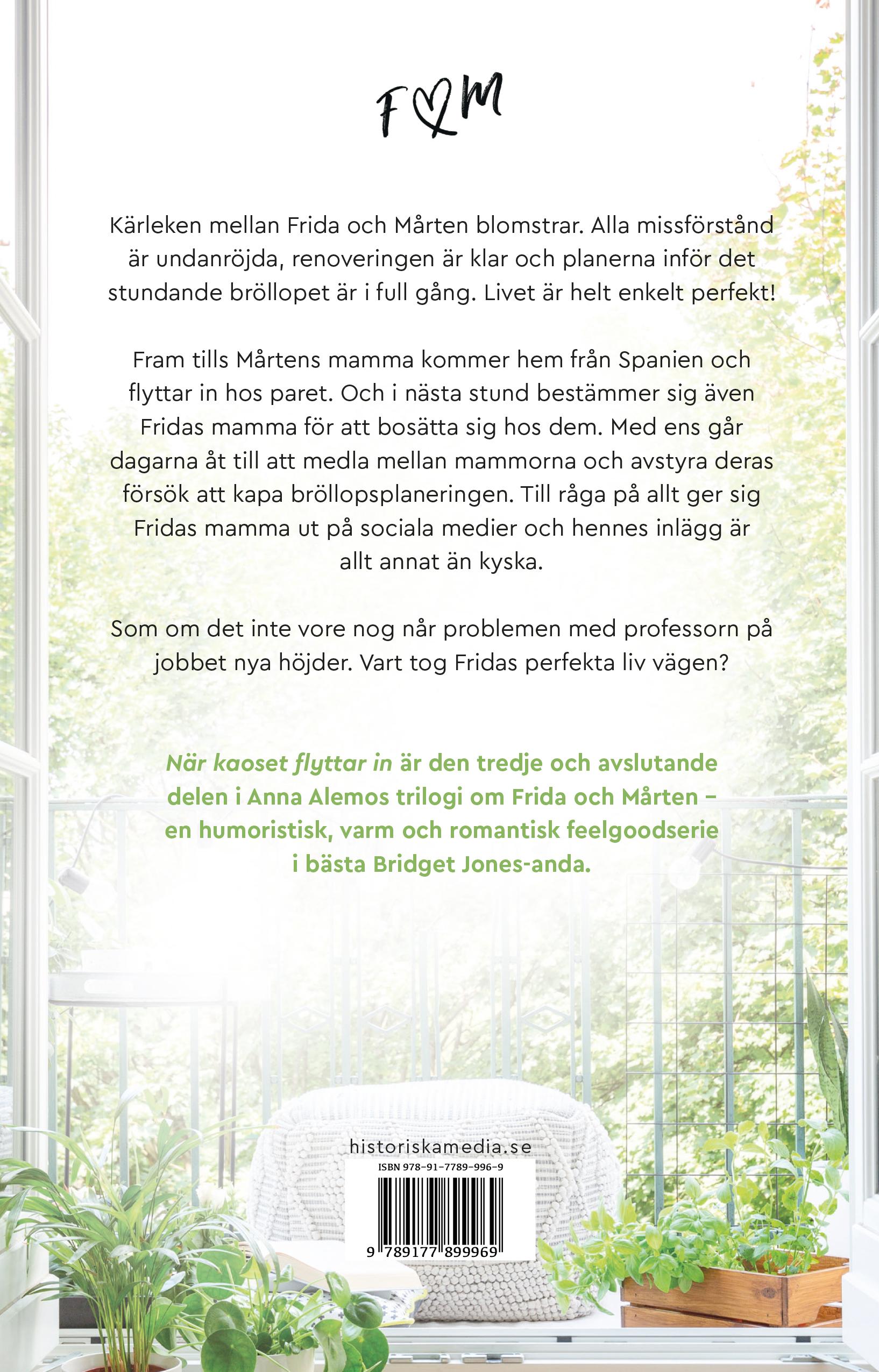 âOm du fixar kaffe, ska jag gĂ„ och tvĂ€tta av mig resdammet.â Agneta snurrade runt och Frida tackade för den lilla respiten hon just fĂ„tt. Kanske hon skulle passa pĂ„ att fly frĂ„n lĂ€genheten. Gustav och Pablos lĂ€genhet var tom, vilket betydde att hon kunde gömma sig dĂ€r. NĂ€r de kom hem frĂ„n smekmĂ„naden kunde hon Ă„tervĂ€nda hem, förutsatt att Agneta hade flyttat ut dĂ„.