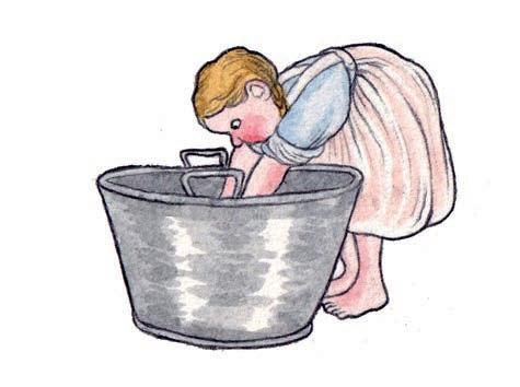 Barnen hjälper till med hushållsarbetet hemma. Även de minsta får hjälpa till med det de kan.