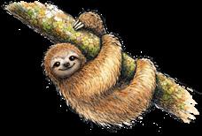 A sloth is a slow animal that lives in Central and South America. They live in rainforests where it is warm and wet. Sloths live most of their lives sleeping in trees. They sleep for up to 10 hours a day. They only come down when they have to go to the toilet. Sloths have very long claws on their front feet. Some sloths have two claws and others have three. Sloths have long arms to help them climb. They move very slowly so that hungry animals do not see them move. Sloths eat leaves but sometimes they eat berries and insects too.