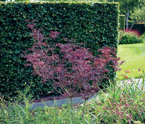 rödbladig fläd E r är en fin uppstickare i rabatten, och kan enkelt hållas i schack med beskärning.