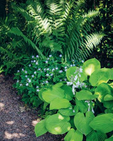 klätterväxter vid diskreta stöd/spaljéer. Blir det luckor kan du sätta ut sommarlökar, som dahlior, eller ettåriga sommarblommor. I bakkanten kan du med fördel välja marktäckare som tål mer skugga.