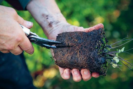 6 – Plant E ra! Klipp gärna 3–4 jack i rotsystemet i jordklumpen, särskilt om det ser ut som om rötterna har snurrat runt i krukan, innan du sätter ner den i jorden.